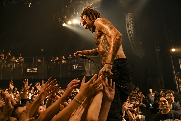 MCに入ると、「今夜、みんなに自分たちが持っているパワー、そして自分たちの存在の大切さに気づいてほしい。今この場所にいるだけでパワフルなんだ。俺たちは今、みんなと一緒に東京にいられることに感謝をしている。君たちのパワーと文化を俺たちとシェアしてくれてありがとう。俺たちのありのままの姿を受け入れてくれてありがとう」──ジェイソンはこう感謝を述べ、今まで暴れていたフロントマンとは思えない紳士な面も覗かせた。