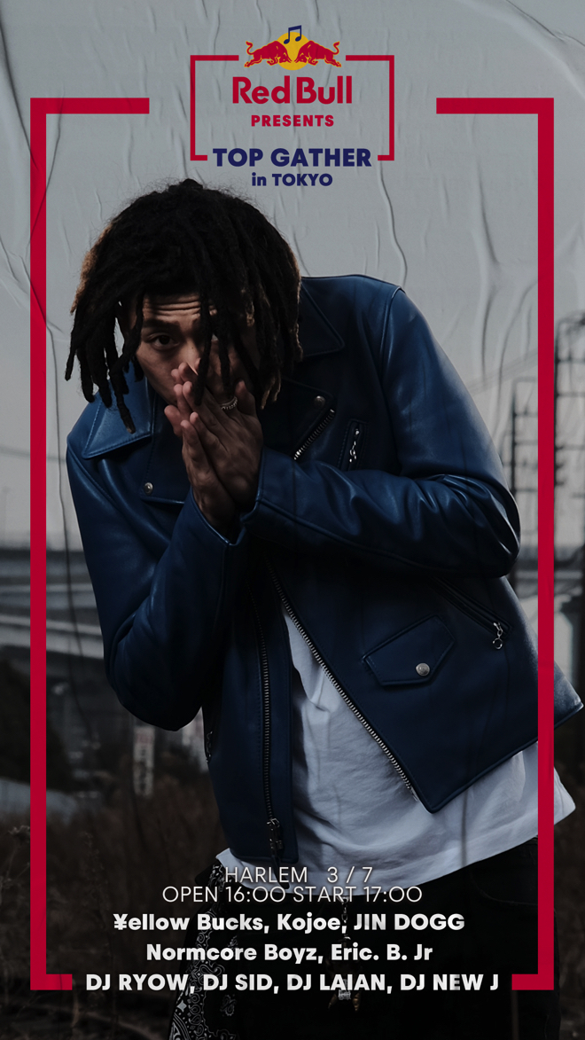 同公演は、レッドブルのイベントシリーズ<Red Bull presents>の一環として開催されるものだ。¥ellow Bucksが自身の活動拠点・名古屋で主宰する<TOP GATHER>が満を持して東京に進出する。