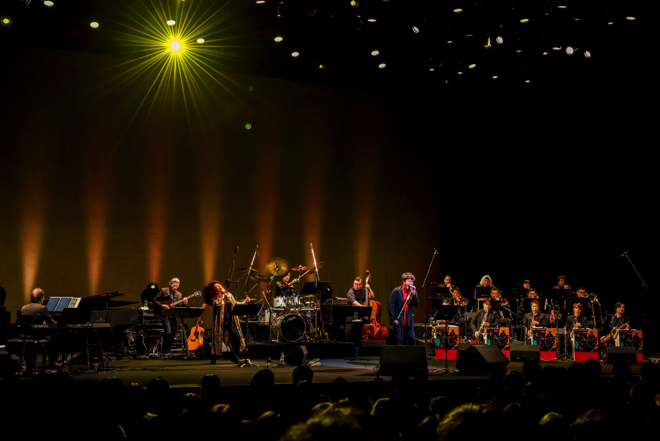ハッピーな歌もののビッグバンド企画をやるにあたって、やはりその魅力は、まずはライブにあると思ったからです。ぜひ、ステージの躍動感、そしてジャズとポップスのインタラクティブな世界をご堪能ください。」──佐藤竹善
