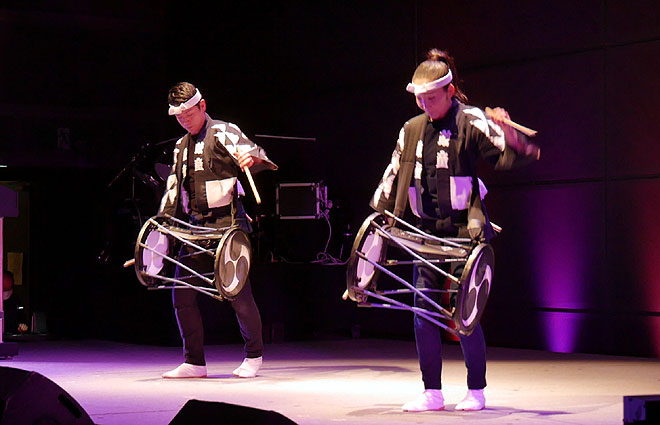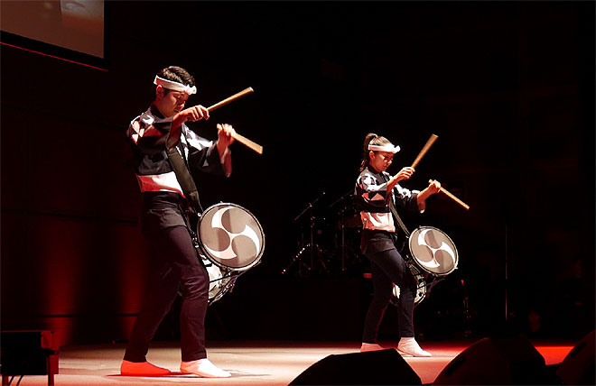 ▲鼓童の北林玲央さん(左)と渡辺ちひろさん(右)。