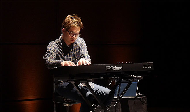 ▲キーボーディストのDevin Kinoshitaさんが演奏を披露。きらびやかで力強いSuperNATURALアコースティック・ピアノとエレクトリック・ピアノのサウンドを聴かせた。「88鍵の鍵盤がこのサイズになったっていうのにまずびっくりしたのと、とても本体が軽くなっているので、どこにでも持ち運んで演奏していきたいなと思いました。音もすごくしっかりしてますし、たくさん入っているので、これ1台あればどこにでも行けるんじゃないかなと思います。」
