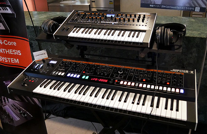 ▲ZEN-Core音源に加えローランドの歴史的なヴィンテージ・シンセのモデリング音源を搭載した最高峰シンセJUPITE-X(下、2020年春発売予定)とコンパクトなJUPITER-Xm(上、発売中)。