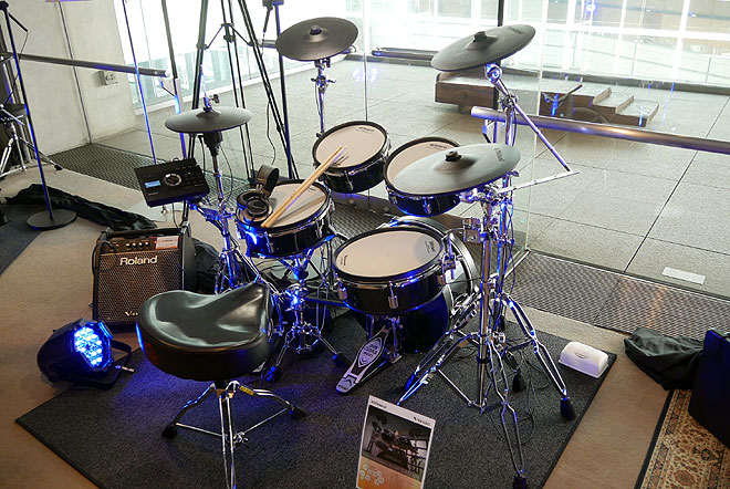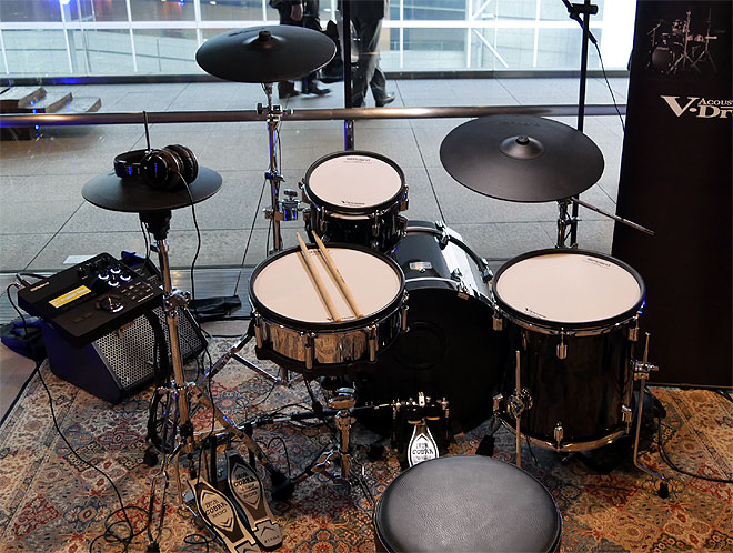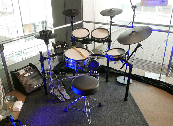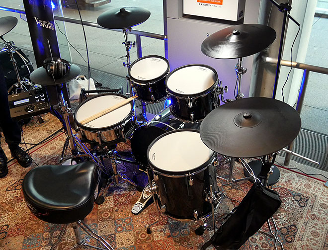 ▲アコースティック・ドラムのようなルックスのVAD506をそうる透さんが演奏。
