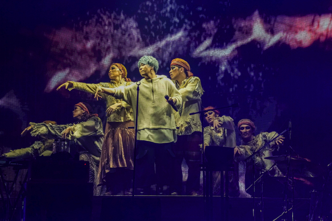 そしてピンク色のLEDに浮かぶ大森のシルエットが印象的な「ProPose」、「Soup」と4thフルアルバム『Attitude』収録曲を披露すると、「懐かしい曲やります!」と「愛情と矛先」へ。続いて「Viking」では海賊船と大海原の映像とともにステージがポップアップし、大森とダンサーがステージ上部でダンスを披露した。