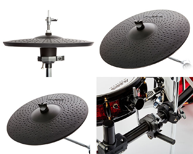 演奏性の高い厚手のラバーを採用したシンバル類も注目だ。3ゾーン・16インチ・ライド、14インチ・クラッシュ、14インチ・可動ハイハットのフィーリングとパフォーマンスは非常にリアル。高級感のあるハンマリングマーク付きのルックスで、フィーリング、コントロール、リバウンド、高い音量バランスに加え、サイズアップされたベル部分により演奏性も向上。また従来の電子シンバルと比較して静粛性にも優れ、深夜練習にも適している。新しいハイハットはレスポンスが速く堅牢な構造になっており、テクニカルかつ繊細なタッチを表現できる。