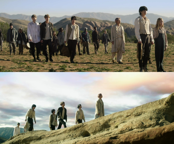 先週末、アルバムのリリースと同時に公開された“Kinetic Manifesto Film”は、メンバーがマーチングバンドや数十名のダンサーと共に繰り広げるパフォーマンスをフィーチャーした作品となったが、今作では「ON」の歌詞の世界をシネマティックに表現。迫力満点のダンスシーンも織り交ぜながら、“与えられた道を運命として受け入れ、自分の先を阻むものがあるとしても前に進み続ける”というBTSの覚悟が象徴的に描かれる。