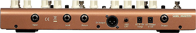 ▲リアパネルには標準フォーンのInput、Send、Return端子、XLRのDI Output端子、グランドリフトスイッチ、ACアダプター用端子とDC Output、標準フォーンのOutput端子を用意。
