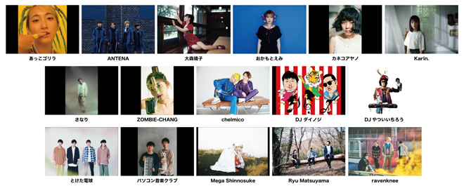 あっこゴリラ(NEW)/ さなり(NEW)/ DJやついいちろう / とけた電球(NEW)/ and more