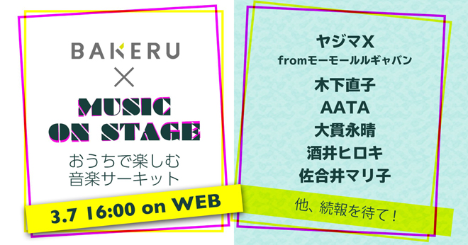 <BAKERU MUSIC ON STAGE -おうちで楽しむ音楽サーキット – >今週末に開催決定