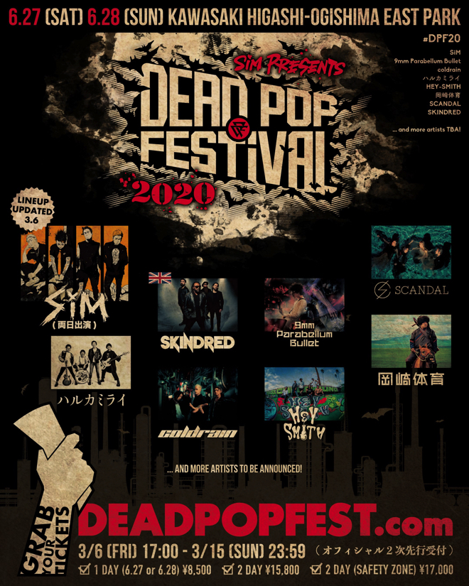 SiM主催<DEAD POP FESTiVAL>第一弾でスキンドレッド、9mm、coldrain、SCANDALら