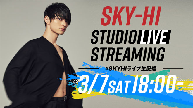 SKY-HIが3月7日18時より自身のYouTubeチャンネル「SKYHICHANNEL」にてスタジオライブを生配信する。