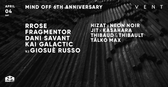 DJとしてもライブパフォーマーとしてもRroseは細部にまでこだわった音のエコシステムを作り上げる。徐々に展開されていく音楽は次第にディープに変容し精神と肉体の未知のすきまに入り込んでいく。<Mind Off>の名にふさわしいヘッドライナーを迎えた6周年パーティは想像を絶するサウンド体験をもたらすだろう。