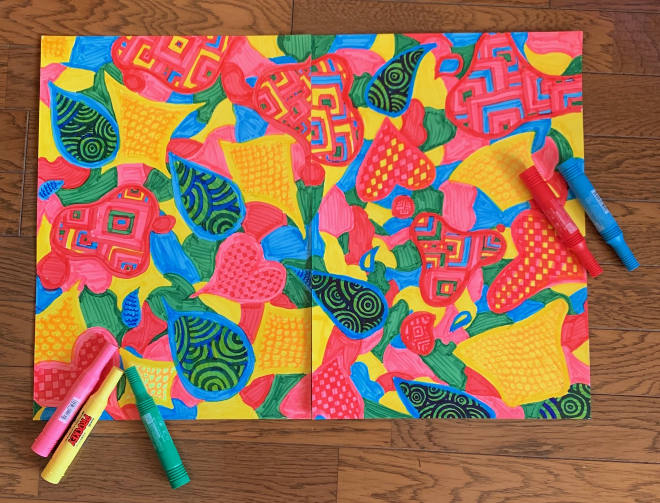 まず、台紙を作ります。材料費は全部で1000円くらい。ペンは就活で『アイオミ紙芝居』を作ったときに買いました。そちらもいつか、お見せできる日が来るかもしれません。