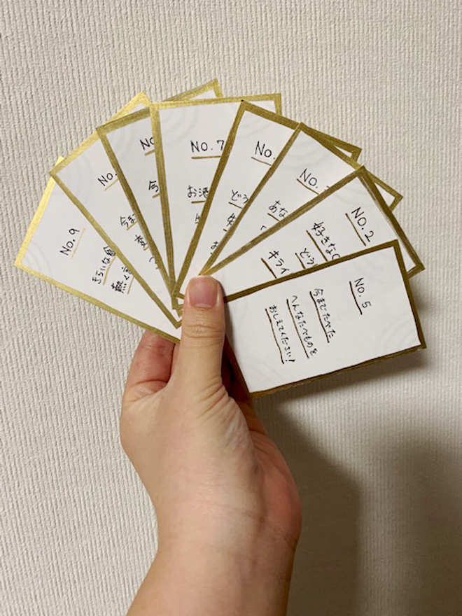 台紙ができたら、マスを張り付けて完成です。いろんなことに考慮した挙句、ネタだしだけで2週間かかりました。いくつかTwitterから投稿いただいたネタも含まれています。
