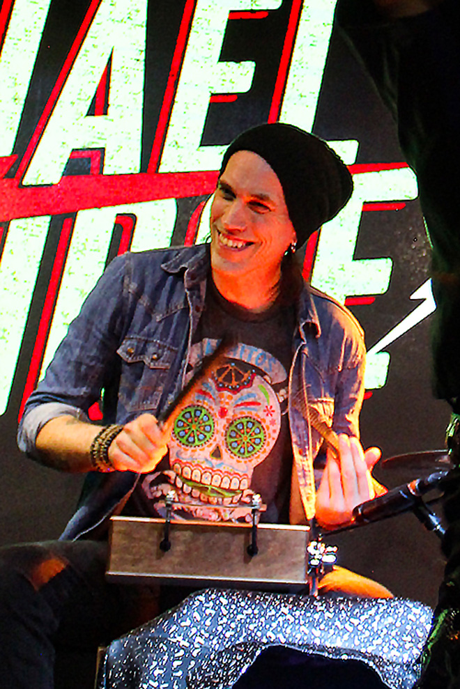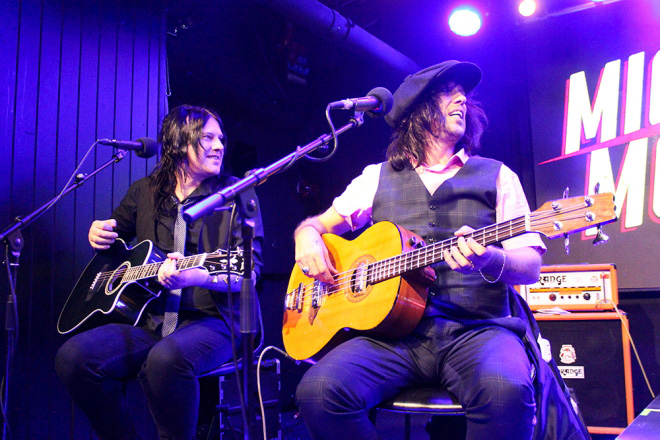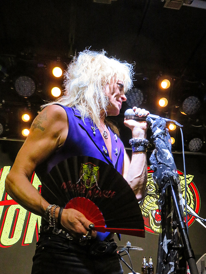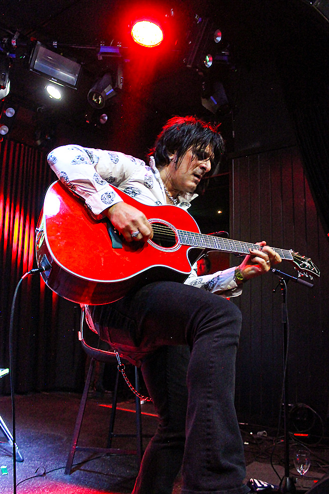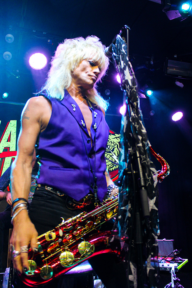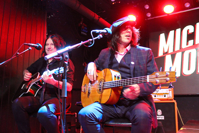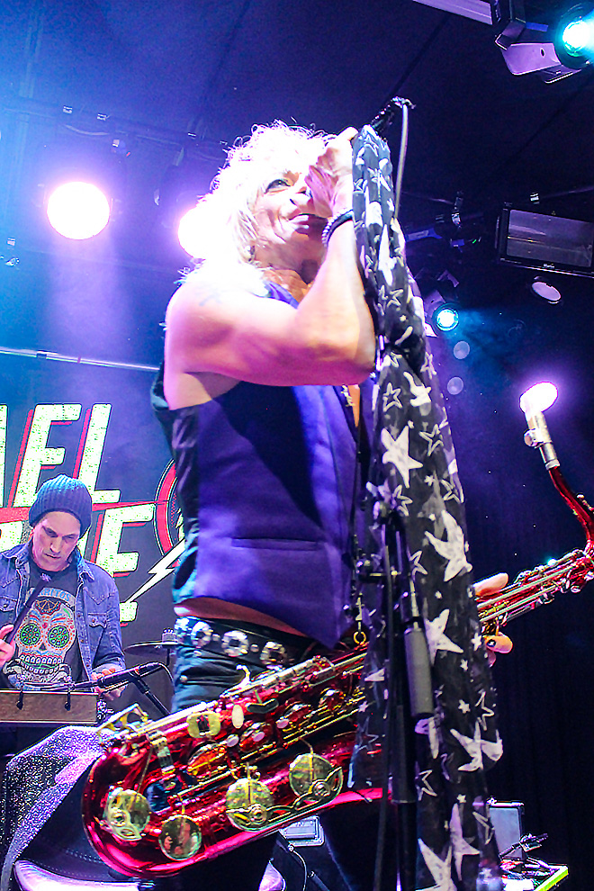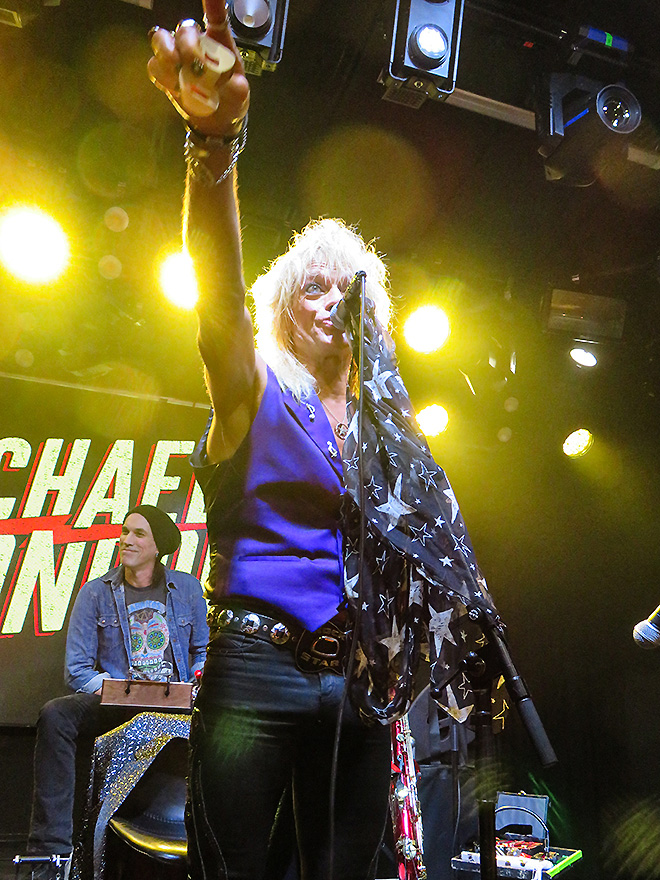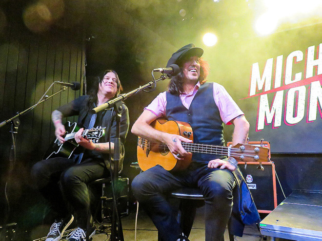 いつも動き回ってエネルギッシュなライブを見せてくれるマイケル・モンローですが、この日のライブは珍しくアコースティックライブ。しかもいつもより小さめの会場で観れるというのもレアでなんだか嬉しい。チケットはもちろんソールドアウト!ステージにはメンバーそれぞれにイスが用意されてました。ジャケット着て登場したマイケル、イスに座って始まるのかと思いきや、イスに座ることなく1曲目が終わるとジャケットを脱ぎイスの背にかけ、他のメンバーが椅子に座って演奏してるのとは対照的に元気に動き回り、マイケルに用意されてたイスは座るためじゃなくて、上にあがってジャンプする踏み台になってました。結局ライブ中イスに座った記憶はありません。そしていつものようにマイクをぶんぶん振り回したり、サックスやハーモニカふいたり、エッグシェーカー っていうのかな?たまご型のマラカスをシャカシャカふりながら歌った「Malibu Beach Nightmare」は最高に楽しかった!そしてかなりご機嫌で歌の間にスタンドアップコメディアンか?ってぐらいジョークが飛び交い、早口で意味がよく分からなかったのもあったものの、観客もステージのメンバーも笑うもので、つられて笑ってしまうというなんだかとっても楽しいアコースティックライブで、けっこうたくさん曲やってくれたのに時間があっという間に過ぎていきました。こういうライブぜひともまたお願いしたいです。