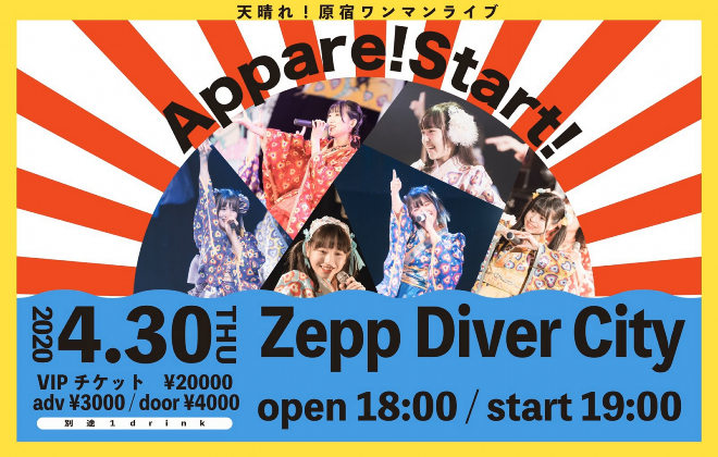 天晴れ!原宿が、4月30日(木)に東京・Zepp DiverCity(TOKYO)で<天晴れ!原宿ワンマンライブ~Appare!Start!~>を開催する。
