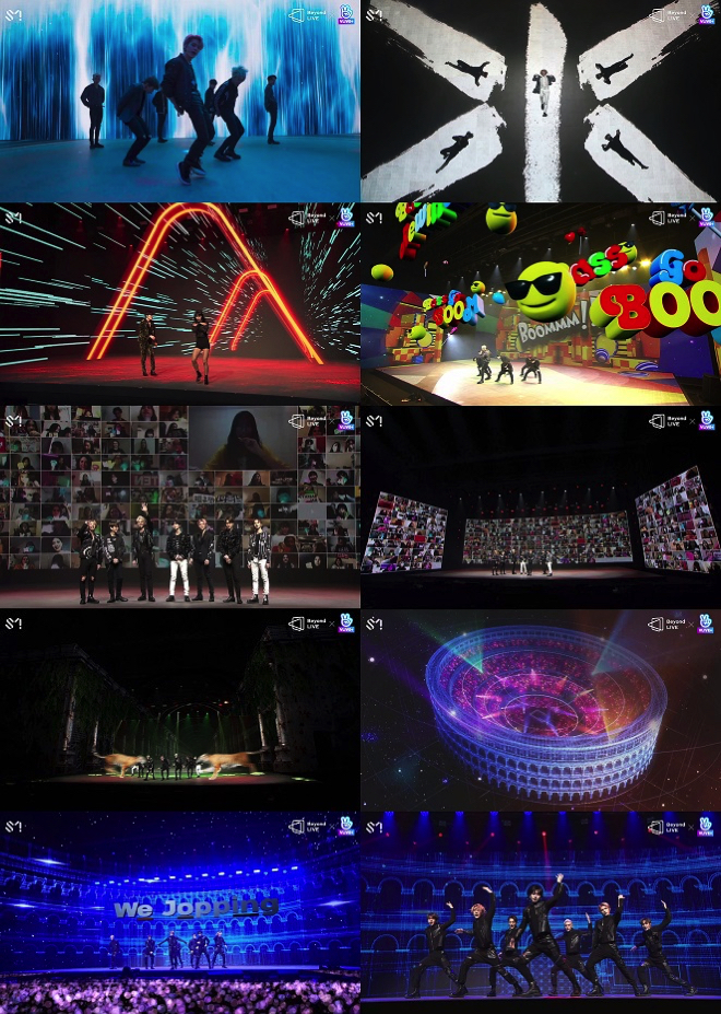 カメラワークと実際の空間を連動させるAR合成技術(Live Sync Camera Walking)やリアルタイム3Dグラフィックスをはじめ、新技術を活用した演出の数々も見どころとなった同公演。初公開の新曲「虎」(Tiger Inside)のステージにはARで表現された虎が登場し、公演のラストを飾った「Jopping」では巨大なコロシアムとペンライトの波が創出されるなど、趣向を凝らしたステージ演出がSuperMのパフォーマンスをダイナミックに彩った。