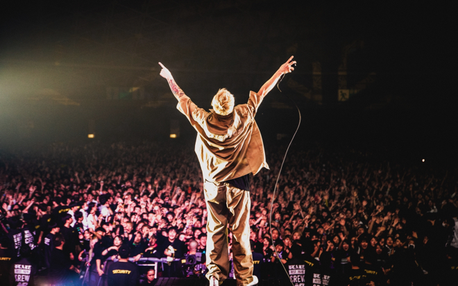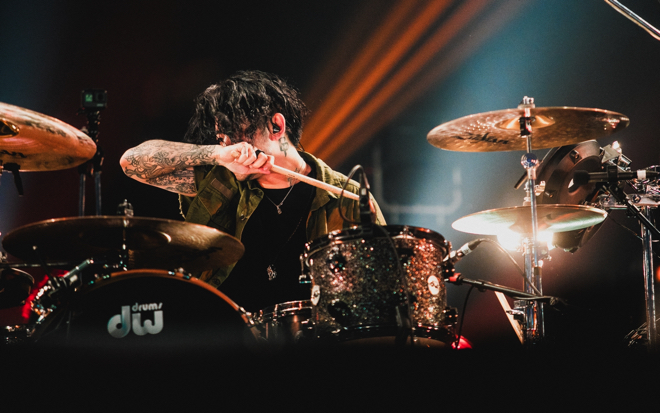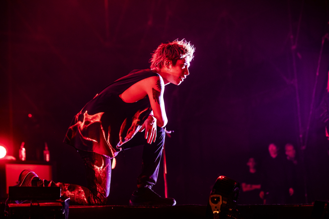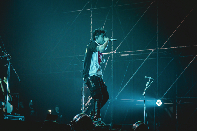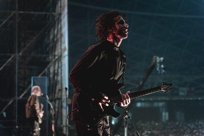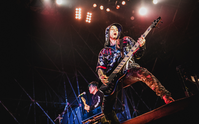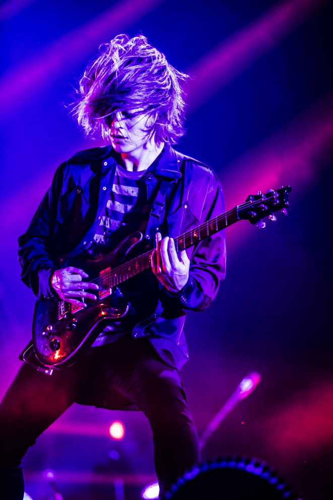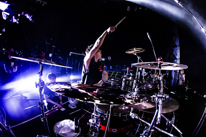 次はcoldrainの2マン・シリーズで2018年5月にも対バンしている米ダラス発のクラウン・ジ・エンパイアが登場。昨年出た最新4thアルバム『SUDDEN SKY』収録曲をメインに据えた内容で、特にアンドリュー(Vo)のクリーン・ヴォーカルを活かした「BLURRY (out of place)」におけるキャッチーな美メロにうっとり聴き入るばかり。重厚なメタルコアを掲げながら、エレクトロを隠し味にした演奏でスケール感に満ちたサウンドに心を奪われた。