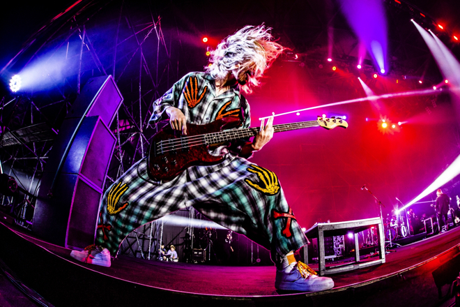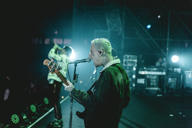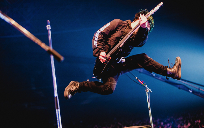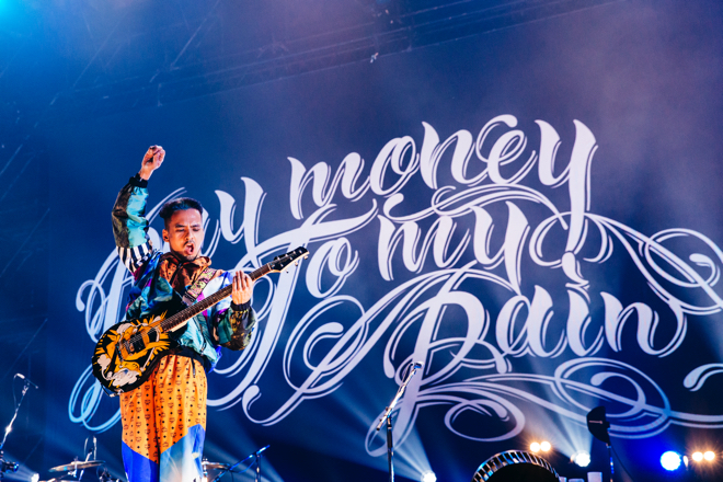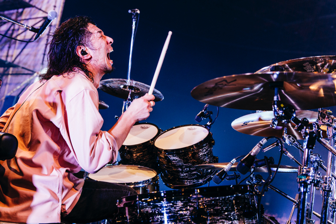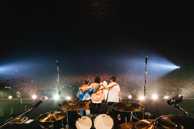 10-FEETは3ピースの限界に挑むような多彩なミクスチャーで観客を縦横に揺さぶり、中盤過ぎにTAKUMA(Vo,G)は両手を広げてウォール・オブ・デスを促すと、そのまま閉じて観客を爆笑させていた。その後に放った「RIVER」で大合唱の光景を作り上げ、フロアを完全に一つに束ねていく。「後悔、不満、そのまま引きずってしまえ、燃やし尽くせ!」と吠えると、「その向こうへ」をプレイ。全エモーションを絞り出すような歌声と演奏に鳥肌が立ち、ラスト「ヒトリセカイ」に繋げる流れも素晴しかった。