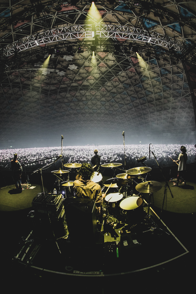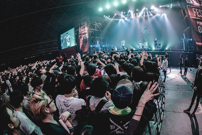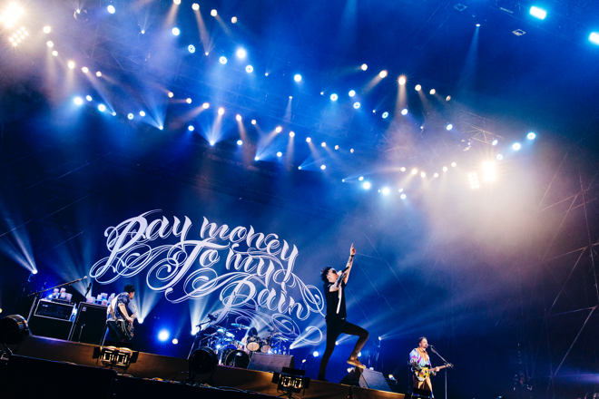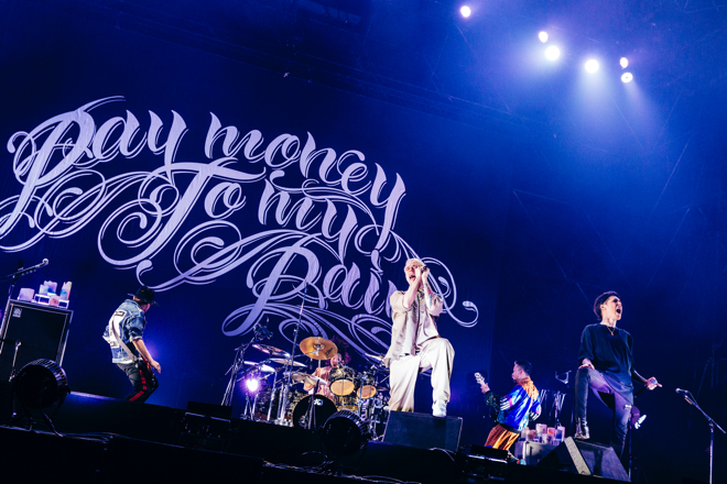 続くMONOEYESは5曲目「Borderland」をやり終え、細美(Vo,G)はMCを挟む。「俺らの世代にとってはPay money To my Painがいるのがとんでもなくデカくて、Kに久々に会えるのかなって。Kのバカ野郎に捧げます!」と告げた後に「Get Up」を披露。まるでKに立ち上がれ!と語りかけているようであり、この場所で聴いた楽曲は特別な輝きを帯びていた。ラストは「My Instant Song」、「Borders & Walls」とノリのいい曲調で大いに盛り上げてくれた。
