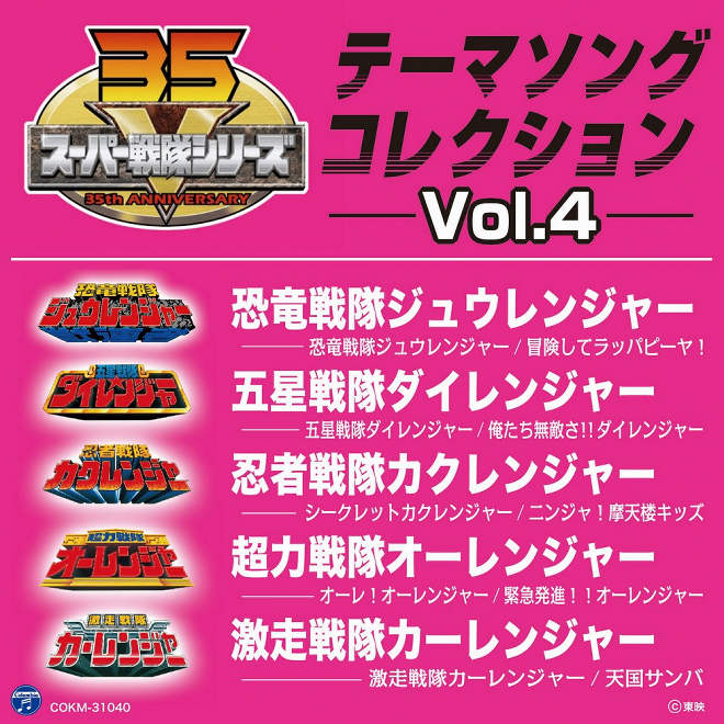 『スーパー戦隊シリーズ テーマソングコレクション』は現在、スーパー戦隊シリーズ第1作『秘密戦隊ゴレンジャー』から第35作『海賊戦隊ゴーカイジャー』までのテーマソング70曲を収めたVol.1~Vol.7が配信中。