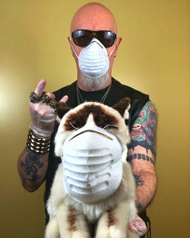 ハルフォードは、手袋にマスク姿で、マスクをしたぬいぐるみを抱えた画像を投稿し、「マニアックス、安全でいろよ。これが何で、何をしちゃいけないか、わかってるな! 自分の隔離ルーティンについてお互い伝え合おう。 #heavymetal #ink #tattoo #caturday #cat #catsofinstagram #stayhome #stayhealthy #staysafe #selfie #you #me #together #strength #power #lift #faith #family #friends #fans #love #one #world #peace」とのメッセージを送った。