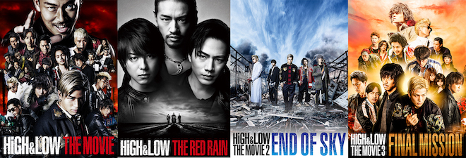 『HiGH&LOW』公式YouTubeチャンネルでは、2016年に劇場公開された同シリーズの映画第一弾『HiGH&LOW THE MOVIE』をはじめ、EXILEのTAKAHIROと三代目 J SOUL BROTHERSの登坂広臣がダブル主演を務めたスピンオフ映画『HiGH&LOW THE RED RAIN』(2016年)、そして『HiGH&LOW THE MOVIE 2 / END OF SKY』(2017年)、『HiGH&LOW THE MOVIE 3 / FINAL MISSION』(2017年)の全4作品を公開。