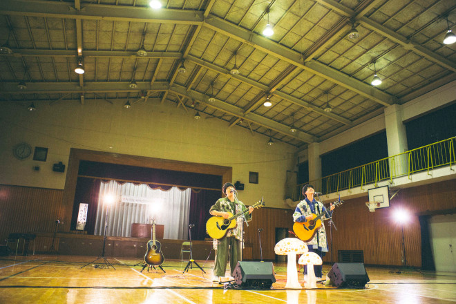 この春に高校を卒業したフォークデュオ、さくらしめじが3月30日(月)に都内某所の廃校にて、さくらしめじ祝5周年企画 これじゃ終われない弾!「さくらしめじがこのままだと留年!?そりゃ困る!世界イチHAPPYな卒業式!やりまーーーす!!!」を開催した。