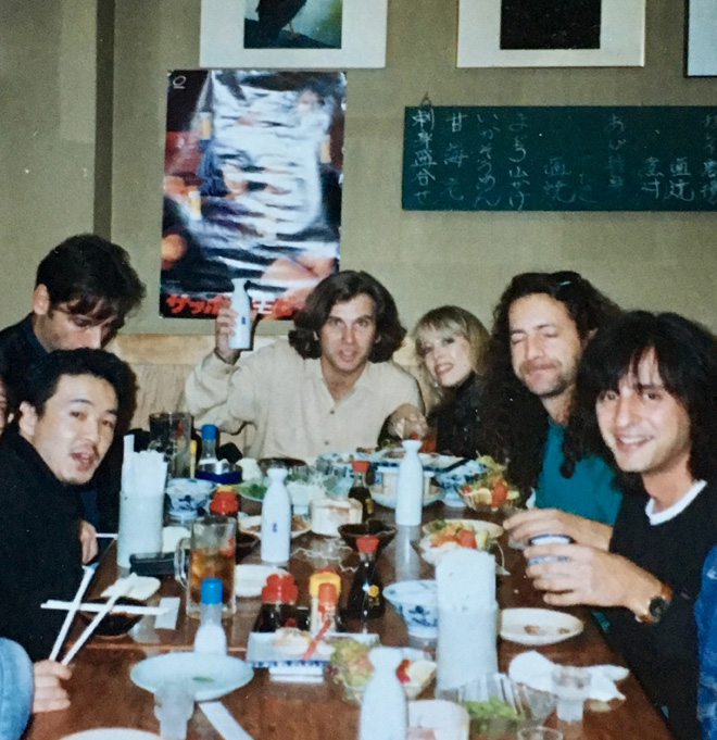 ▲左からジーン・クラーク イアン・ウォーレス デイヴ・メイソン カーラ アル・クーパー スティーヴン・スティルス ジャクソン・ブラウン@The Roxy Theater ウエスト・ハリウッド 1987~88年頃 提供:Carla Olson