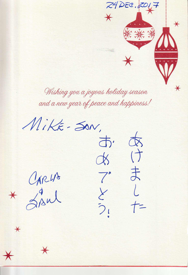 ▲カーラからのクリスマス・カード from Mike’s Collection カーラは日本語が得意なのだ!