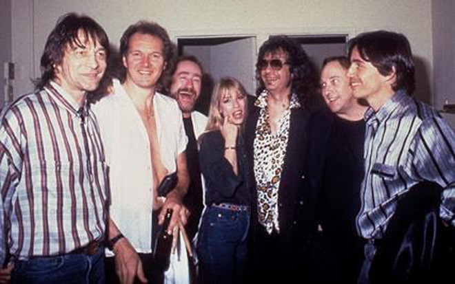 ▲テクストーンズwithデル・シャノン(左から3番目)andイアン・マクレガン(左から2番目)@The Palomino Club 1986年 提供:Carla Olson