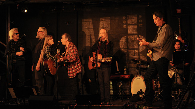 ▲ 『Have A Harmony, Will Travel 2』リリース記念ライヴ@MaCabe’s Guitar Shop サンタモニカ 2020年2月21日 左からジョニー・インドヴィナ ロブ・ウォーラー カーラ ポール・マーシャル ジョン・ヨーク スティーヴン・マッカーシー べン・レコード 提供:Carla Olson