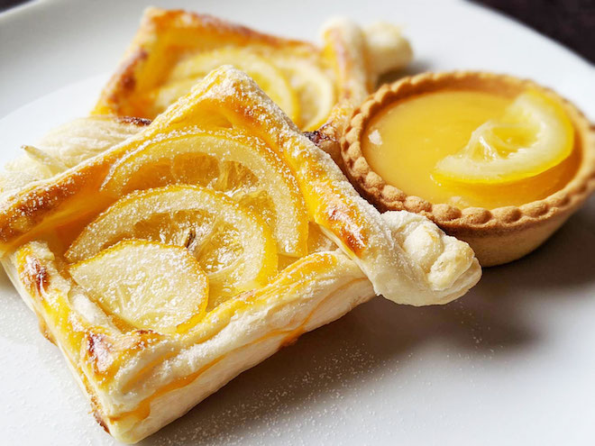 バターの香るパイ生地はサクサクで、そこに乗ったレモンの香りがたまらない。甘いパイに、ちょっとの酸味。なんというか、恋の始まりの甘酸っぱい気持ちがふんわり口中に広がる感じ。朝ごはんのデニッシュとしても良さそう。タルトの方は、思ったよりも甘い。こっくりしたレモンカードの濃厚な甘さのあとに、レモンの酸味が追いかけてくる感じ。