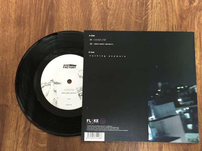 Age Factoryのアナログリリースは今回が初。7インチ盤には、2019年に「DAIZAWA RECORDS」へ移籍して以降、デジタルシングルとして連続でリリースされた「CLOSE EYE」「HIGH WAY BEACH」「nothing anymore」の3曲が収められる。