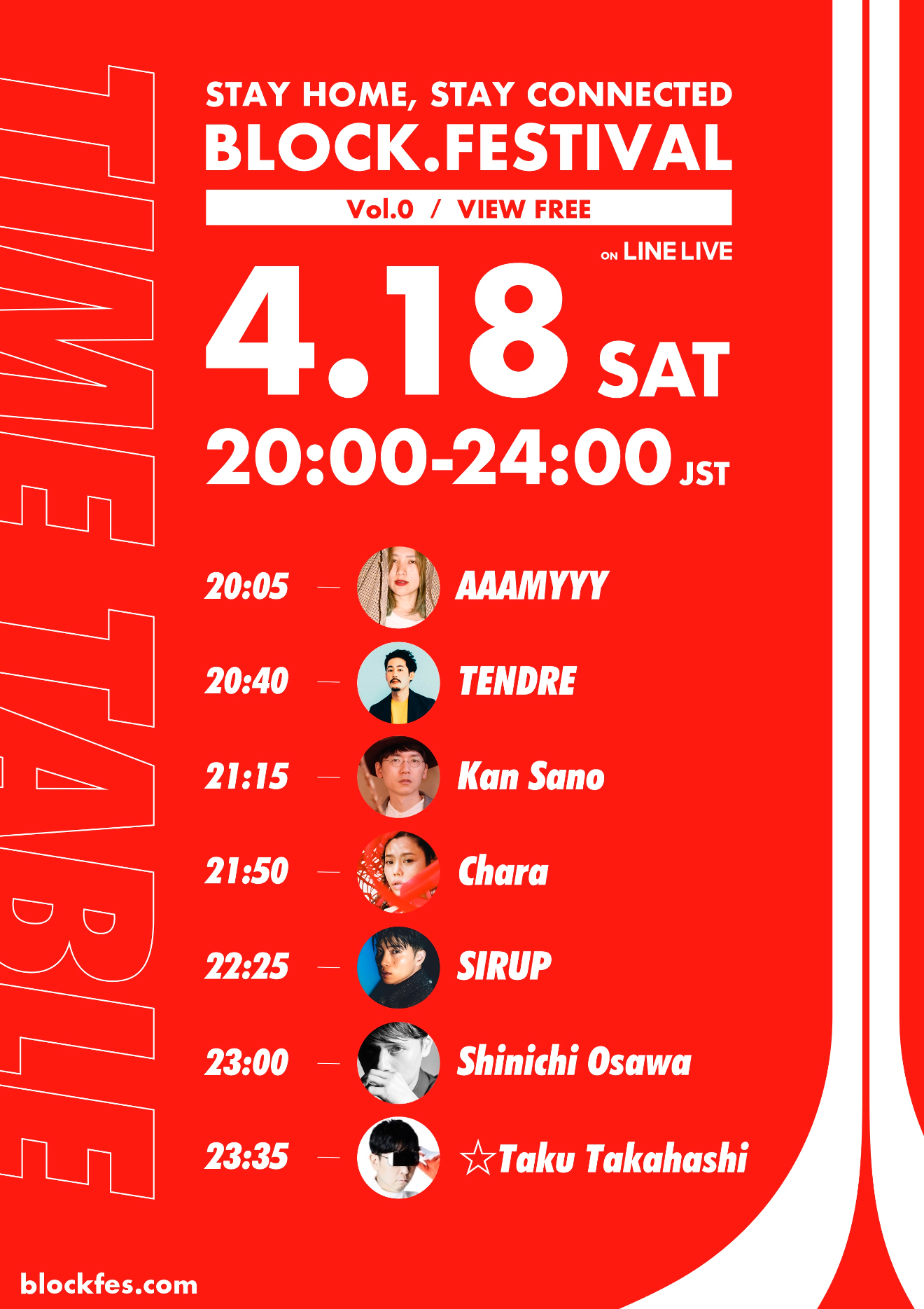 4月18日(土)に開催されるオンライン音楽フェス<BLOCK.FESTIVAL>のタイムテーブルが公開された。