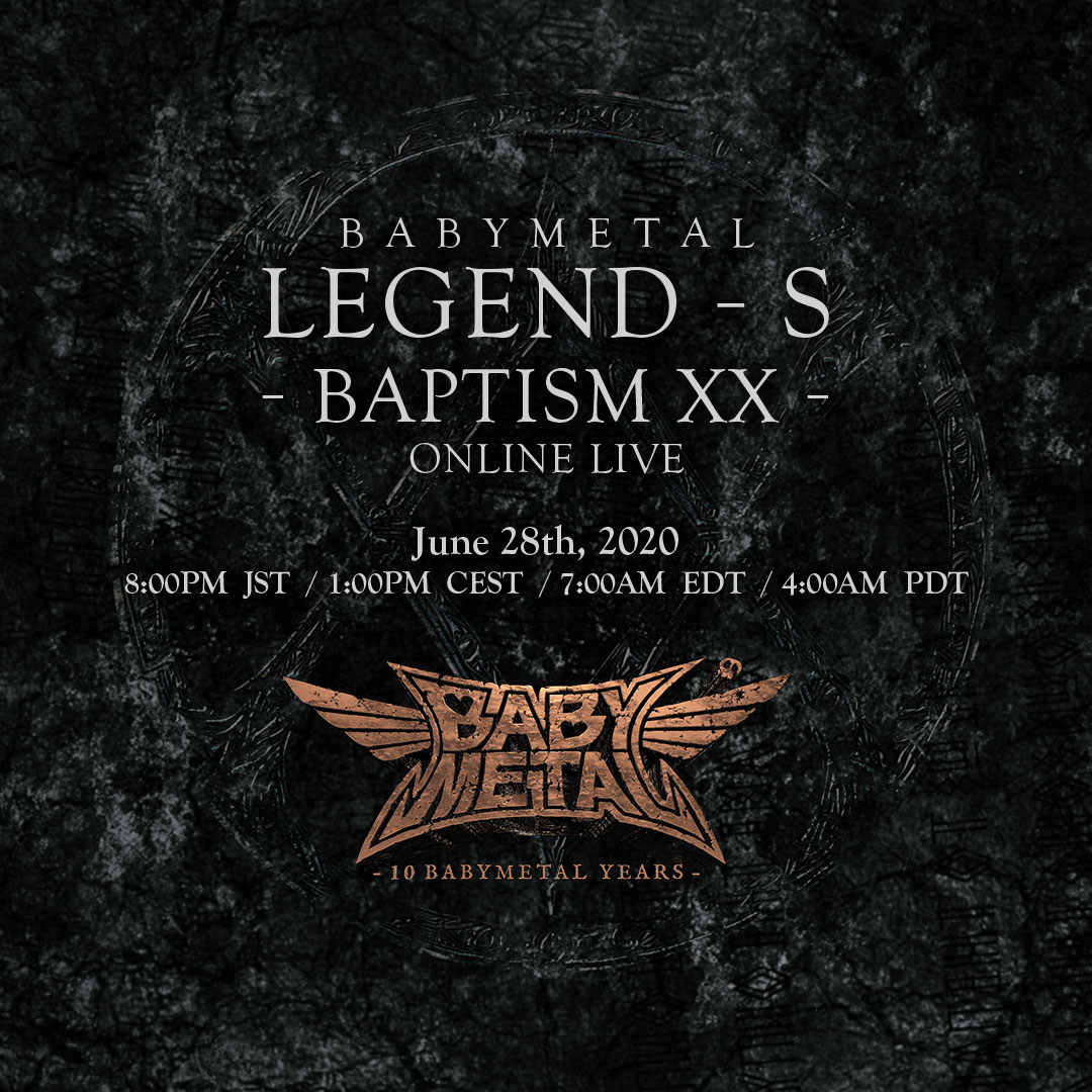 BABYMETALがオンラインライブ第3弾として、SU-METAL初の広島凱旋ライブとなった『LEGEND – S – 洗礼の儀 -』を6月28日(日)20:00(日本時間)からYouTubeプレミア公開することが決定した。