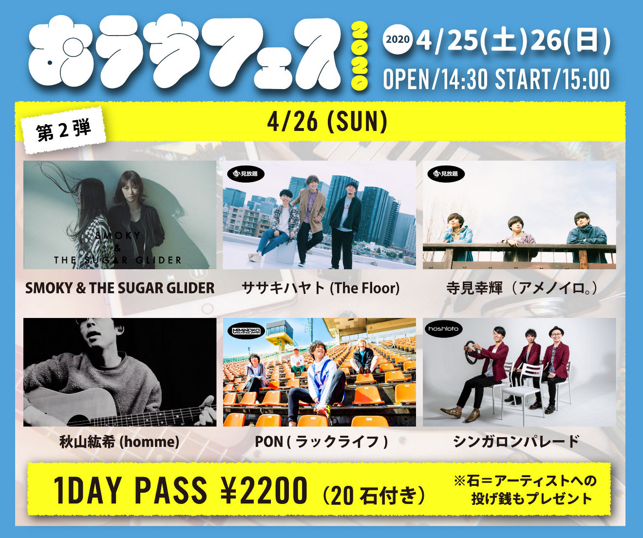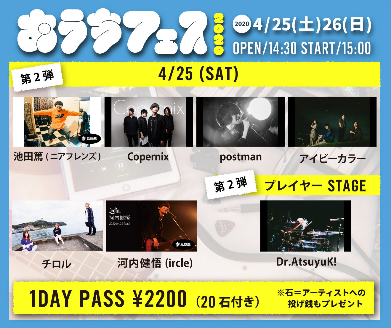 1day pass:2200円(20石付き) ※石=アーティストへの投げ銭!20石をプレゼント!