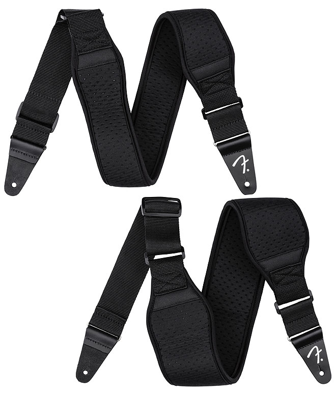 極上の快適性を念頭に設計されたFender Neoprene Strapは、長時間のパフォーマンスに最適。熱を逃がすためのメッシュ加工と広いネオプレンのパッドが背中と肩から重さを緩和する。パッドの両先の補強は重い楽器の使用における耐久性を実現する。