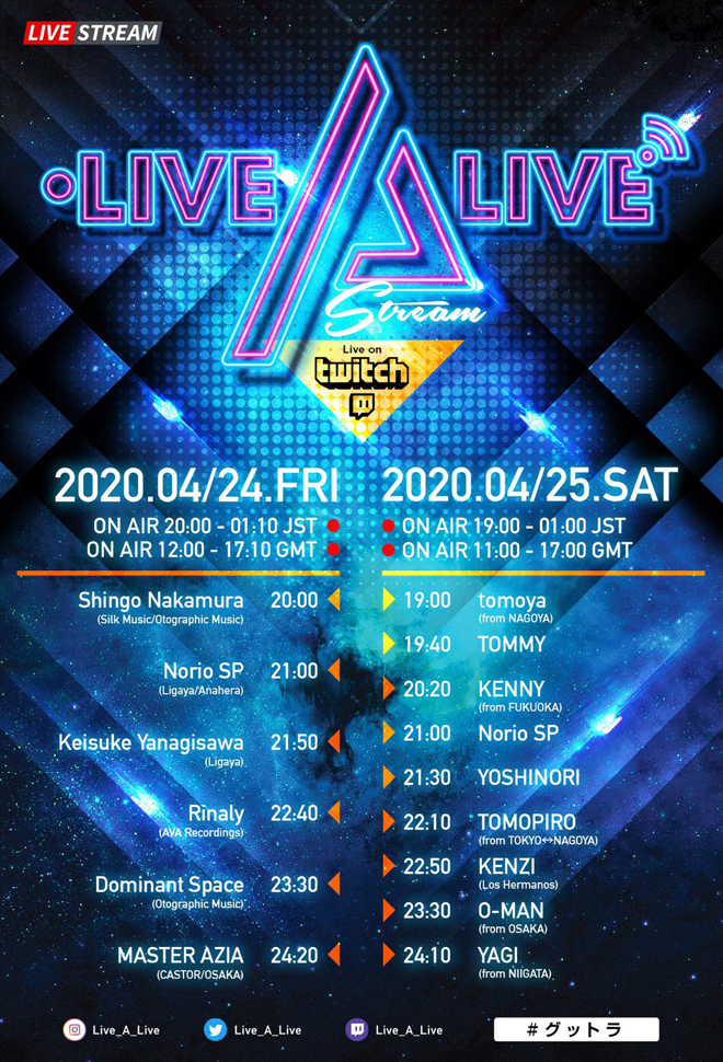 TRANCEアーティストやDJによる配信番組「LIVE A LIVE」4/24&4/25実施