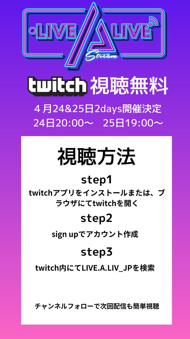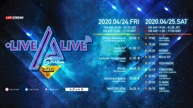 4月24日、25日の2日間にわたり、視聴無料のLIVE配信番組「LIVE A LIVE」が開催される。