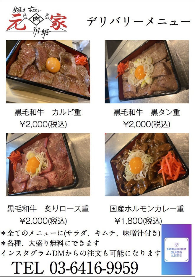 またはオフィシャルインスタグラムアカウント『NAMAYAKIHORUMON_MOTOYA_BETTEI』へDM
