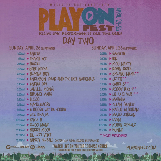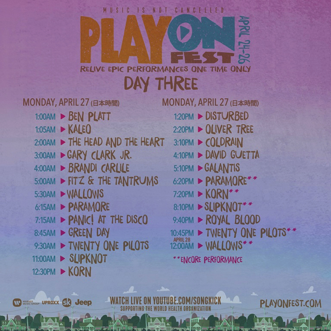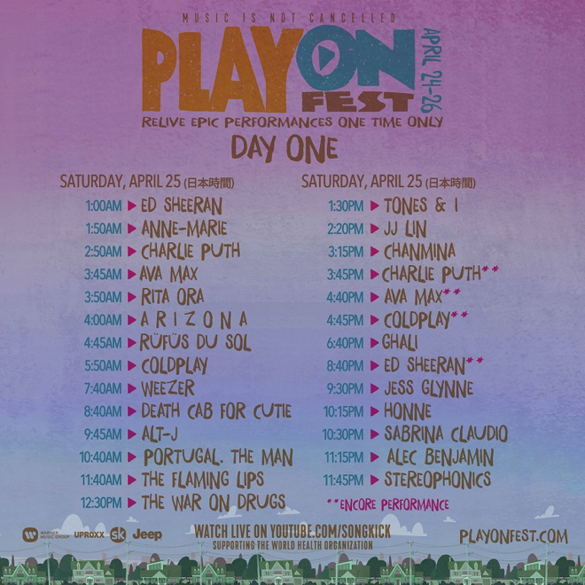 ワーナー・ミュージック・グループによる初のバーチャル・ミュージック・フェスティバル<PlayOn Fest>のタイムテーブルが公開された。