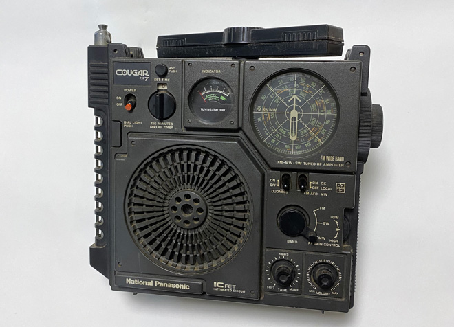これ、何だか知っていますか?ラジオです。クイーンの「ボヘミアン・ラプソディ」をリアルタイムで聴いていた殿方であれば、知っていますよね?ベリカード集めたっしょ?クーガNo.7発売が1973年だからクイーンデビューと同い年なわけです。ジャイロアンテナ、かっけー。中学生だった私はこいつを布団の中に忍ばせて深夜に「セイ!ヤング」とか「オールナイトニッポン」を聞くんだけど、すぐに寝落ちして朝起きたらこのミリタリーな凸凹跡が顔にくっきり、という毎日でしたっけ。