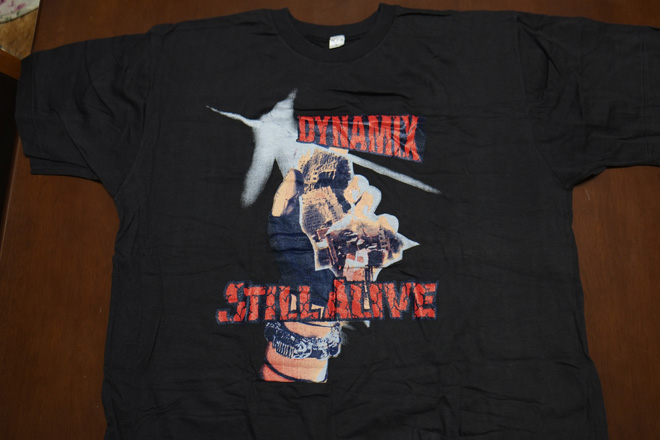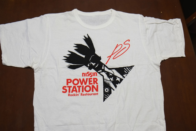 最後には、バンド時代に最もお世話になった日清パワーステーションの懐かしのTシャツを。風営法の問題もあって1998年に営業をやめてしまったのだけど、美味しいディナーも楽しめるライブハウスで、いつも満杯・活況でとてもいい会場でした。たくさんのバンドが巣立っていった名ライブハウスのひとつでもあり、かのXも<Xと仲間たち><静かなX><変なX>という極めて企画性の高いライブを開催してました。このときにTOSHIがフォークソングの弾き語りを披露して、その歌の上手さに感激したという思い出があります。