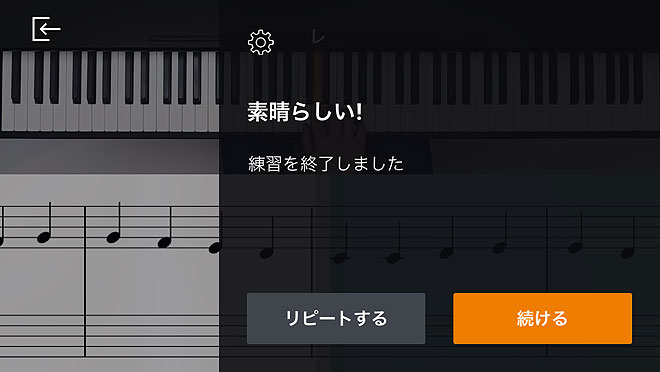 続いてはベートーヴェンの「歓喜の歌」を練習。右手だけ、しかもド~ソだけで弾けるメロディを、2小節ずつに分けてじっくり練習。終了すると「素晴らしい!」と褒めてくれる。あくまでも文字だけで、クラッカーが鳴り紙吹雪が散るような演出はないし、採点カラオケ的な点数発表もない。出来は自分で判断する。flowkeyは大人のアプリなのだ、ストイックに練習するには派手な演出は不要、と納得して練習を進める。その結果、課題のパートをスムーズに弾けるようになった(8小節だけではあるが)。