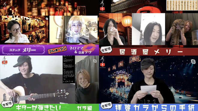 「ギターが弾きたい」「拝啓 ガラからの手紙」「居酒屋メリー」「90年代V系を語る会」など、数々のテーマで配信をしているが、ライブステージとは異なる舞台で毎日視聴者を魅了することは、バンドにとって大きな挑戦だ。