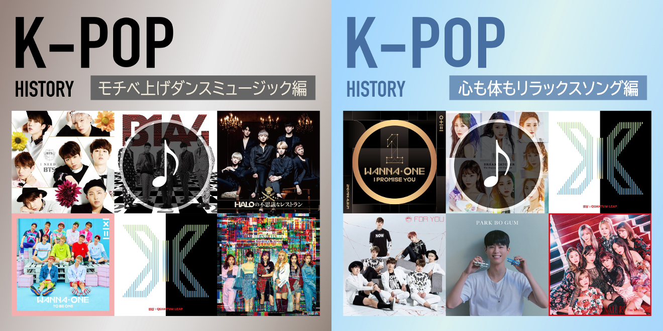 公開された2種類のプレイリストは、その日の気分によって選べるようにテーマに合わせて楽曲がセレクトされている。「K-POP HISTORY~モチベ上げダンスミュージック編~」は、BTS、X1、Wanna One、MYTEEN、Samuel、HALO、B1A4、SS501、DREAMCATCHER、NATUREの楽曲から50曲。「K-POP HISTORY~心も体もリラックスソング編~」は、上記のアーティストに加え、パク・ボゴム、パク・ヨンハといった俳優として活躍の男性アーティスト楽曲も盛り込まれた、バラードからミディアムテンポまで、45曲の構成となっている。