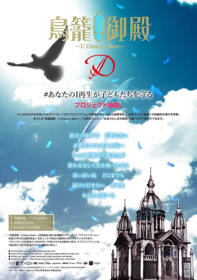 ──オーストラリア森林火災のチャリティーソング2曲の“#あなたの1再生が自然と命を救う”プロジェクトと並行して、日本ユニセフ協会へも自動寄付できる“#あなたの1再生が子どもたちを守る”プロジェクトがスタート。その対象となる曲に、Dが2011年に期間限定発売したシングル「鳥籠御殿〜L’Oiseau blue〜」を選んだのはなんでだったんですか?
