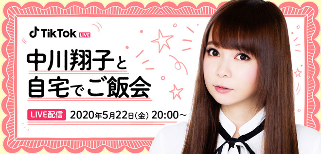 中川翔子が、TikTokのライブストリーミング機能「TikTok LIVE」を使用したライブ配信『中川翔子と自宅でご飯会』を5月22日20:00より実施する。