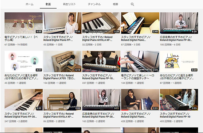 ▲Roland Forestaのスタッフが、演奏を交えつつピアノの選び方やオススメのピアノを紹介。お手入れ方法や使い方のコツなども知ることができる。子供のための電子ピアノの選び方といった動画も。